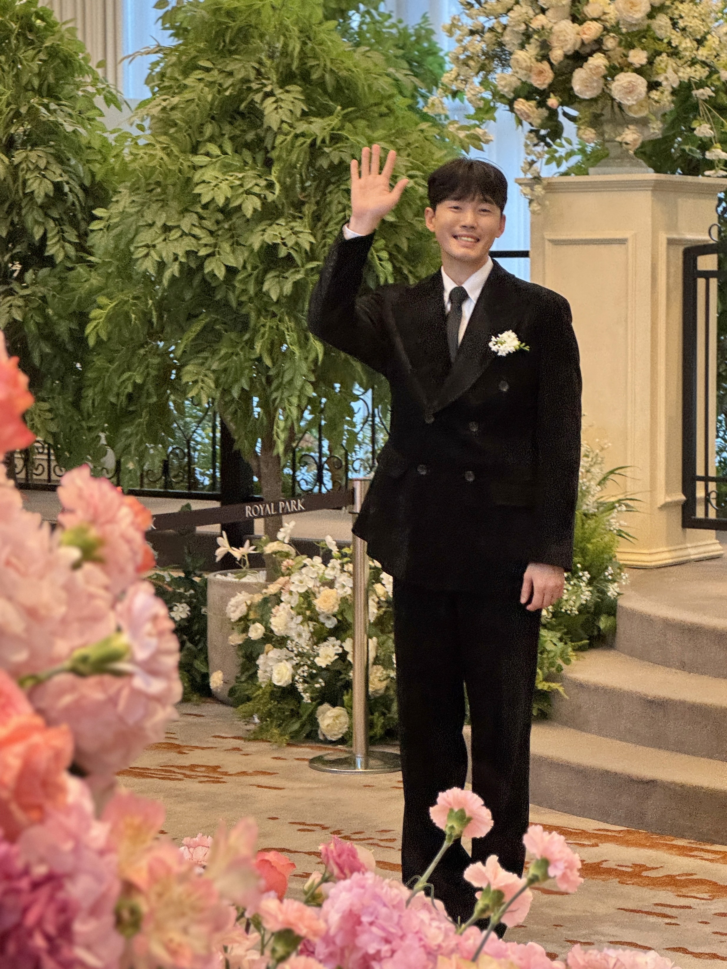 파크홀은 전반적으로 조도가 밝고 화사하게 세팅되어 있습니다. 조명이 인물을 부드럽게 감싸주어 아이폰으로 촬영했을 때 피부 톤이 맑게 표현되며, 풍성한 생화 장식의 색감이 죽지 않고 생동감 있게 기록됩니다. 온미스냅은 이 밝은 조도 값을 백분 활용하여 노이즈 없이 깨끗한 결과물을 완성합니다.