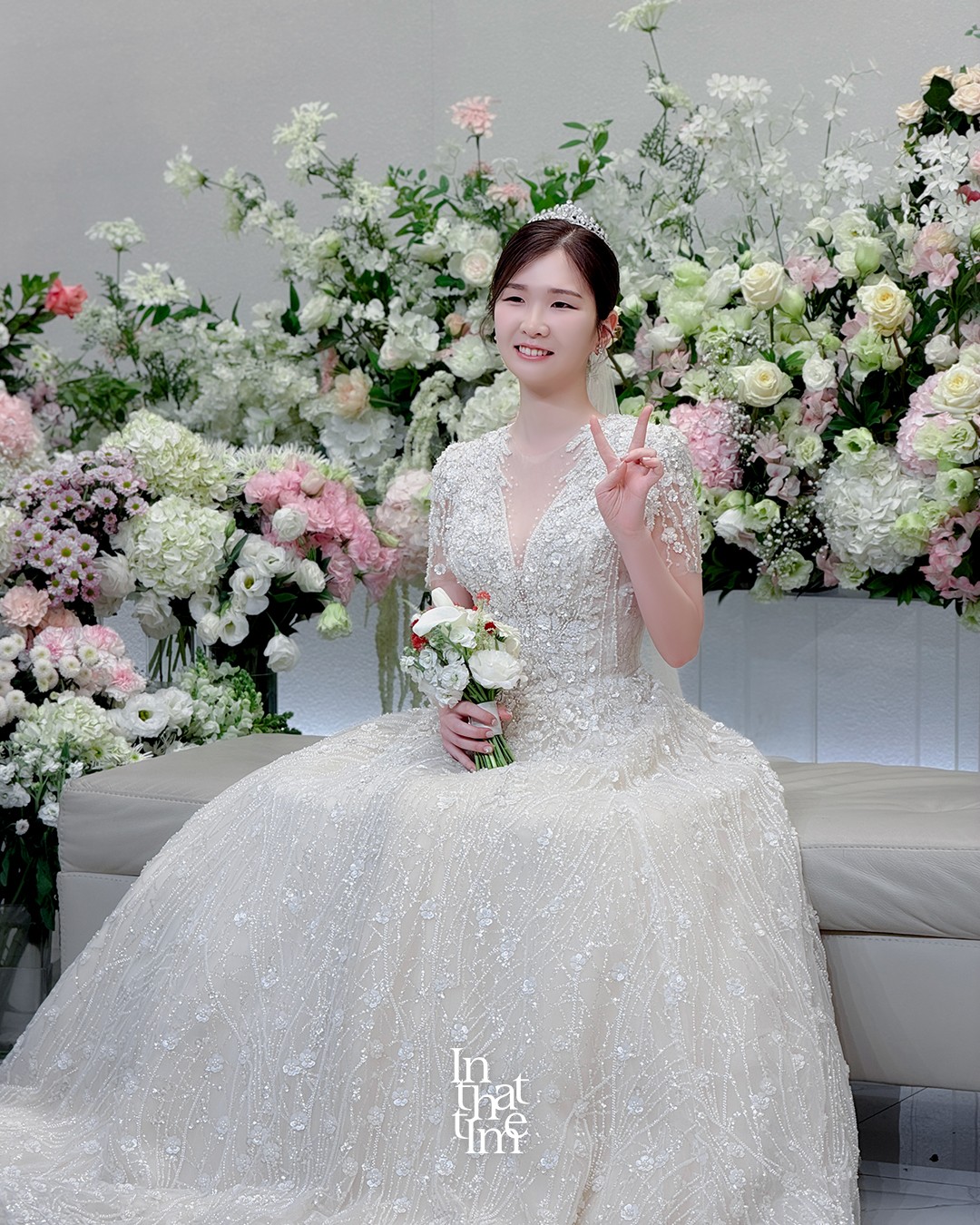 새롭게 바뀐 신부대기실은 따뜻한 무드에 화이트와 그린 톤의 플라워 데코가 더해져 더욱 싱그러운 분위기를 자아냅니다. 꽃들 사이에 파묻힌 듯한 연출이 가능해져, 마치 야외 정원 스냅과 같은 화사한 컷들을 남길 수 있습니다. 인댓타임은 예식 90분 전 미리 도착하여 예비 신부대기실의 예물 컷부터 본 대기실의 연출 컷까지 차분하게 기록합니다.