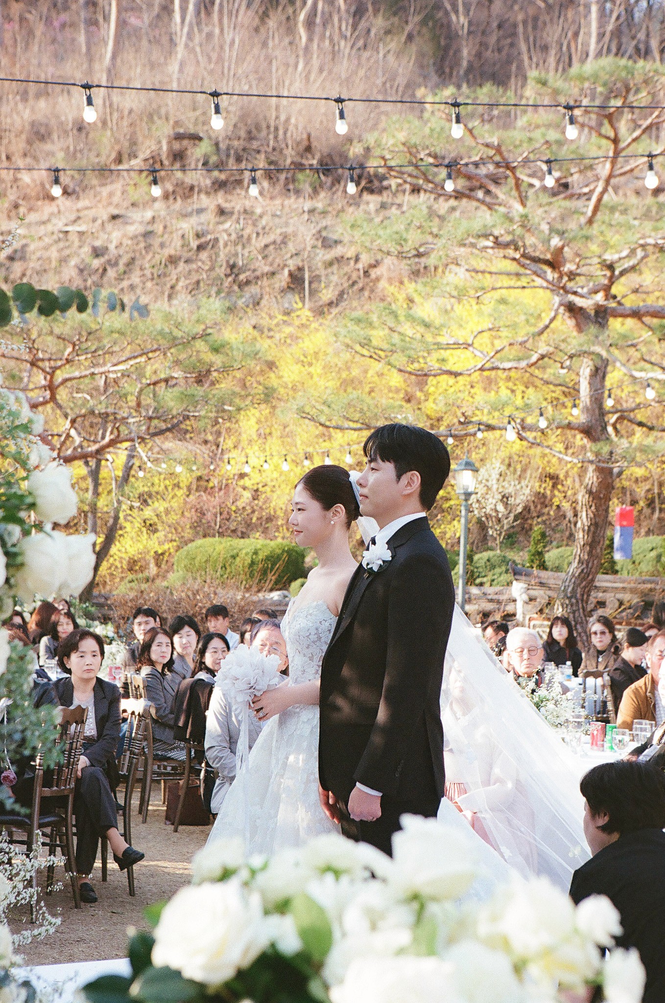 야외 본식은 실내 홀과는 달리 시시각각 변하는 빛과 현장의 공기를 사진에 그대로 담을 수 있다는 것이 큰 장점입니다. 나라코드는 답답함 없는 개방감을 활용하여 다양한 구도에서 신랑 신부님의 가장 예쁜 모습을 포착합니다.