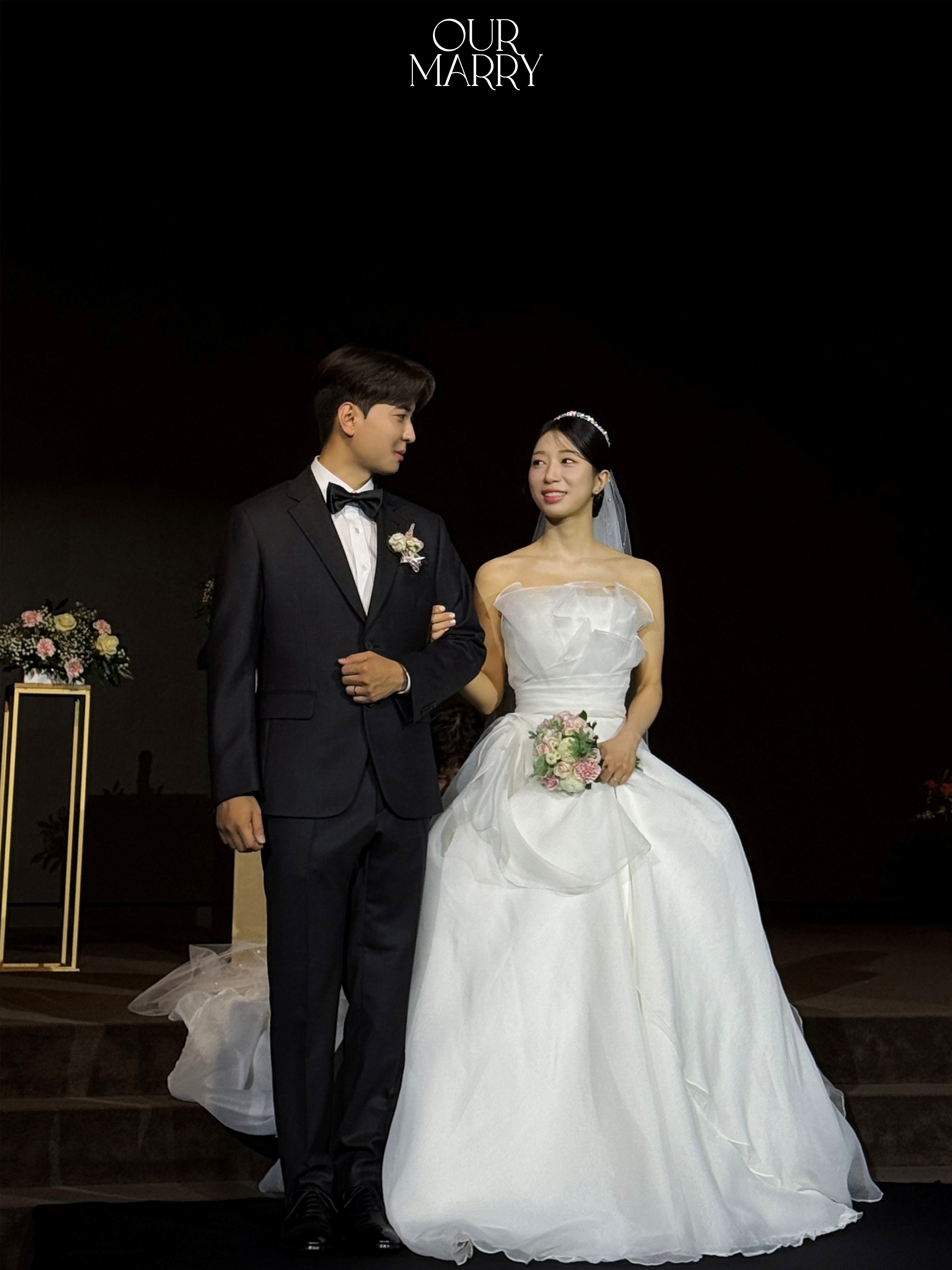 조명 연출의 미학: 자연광이 부족한 어두운 홀 구조이지만, 조명 연출이 매우 체계적입니다. 아워메리스냅은 이 은은한 조명 톤을 살려 피부 톤은 맑게, 분위기는 더욱 깊이 있게 보정합니다.