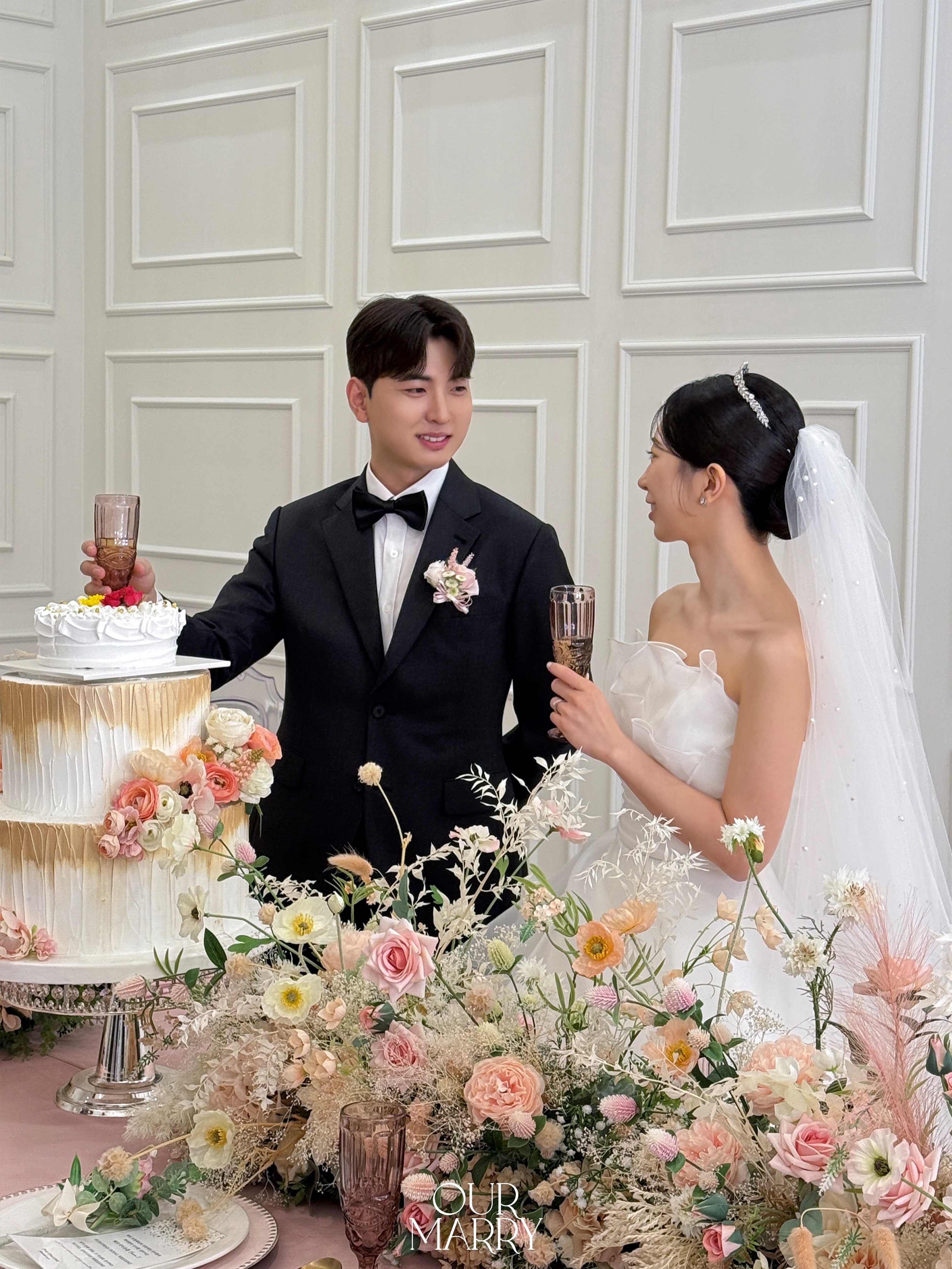 풍성한 플라워 데코와 건배 컨셉 샷