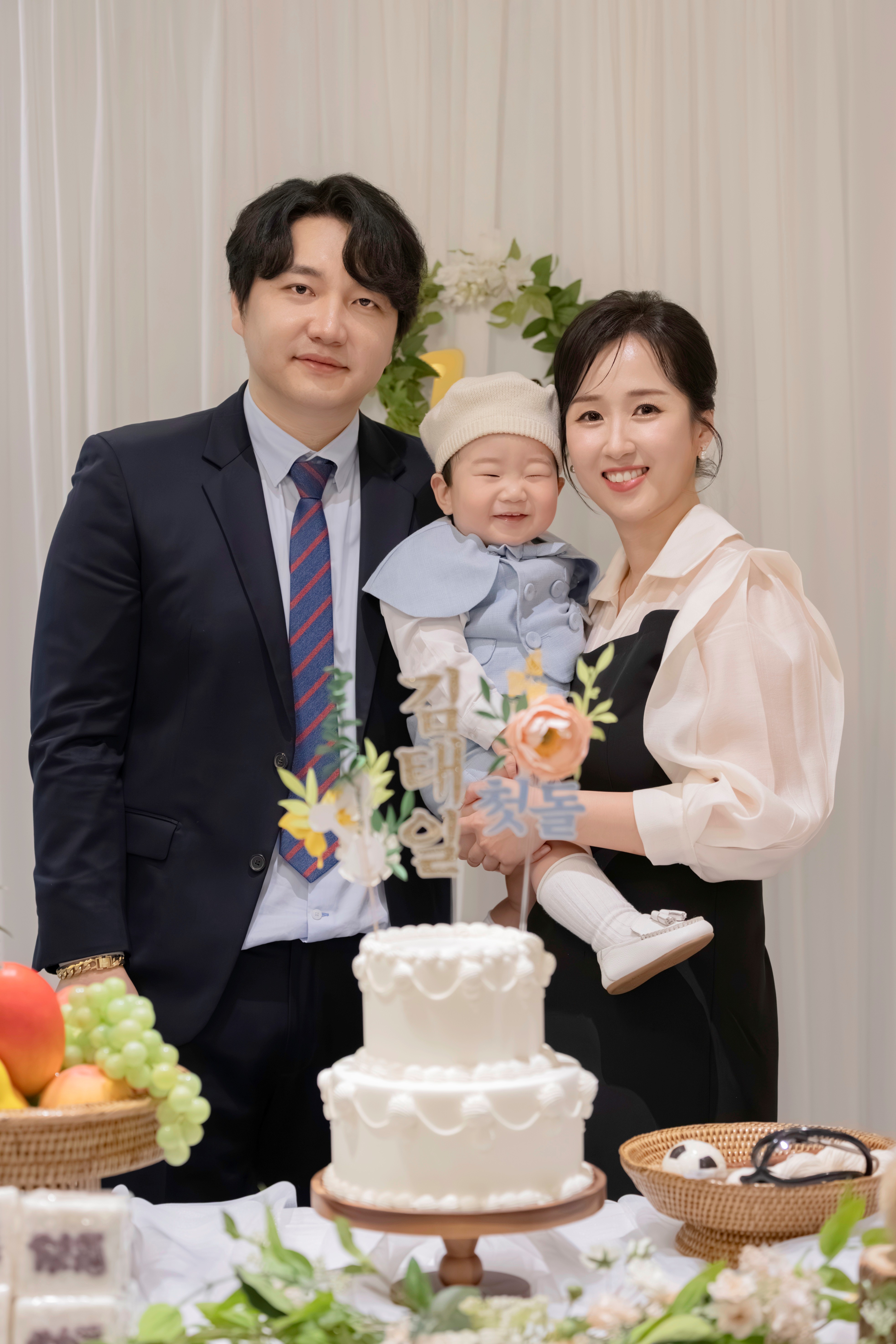 돌잡이와 같은 메인 이벤트가 종료된 후, 식사 시간이나 행사 마무리 시점에 엄마와 아빠를 위한 별도 촬영을 진행합니다. 아이의 생일이지만, 1년간 고생한 부모님께도 소중한 선물이 될 수 있도록 정성을 담습니다.