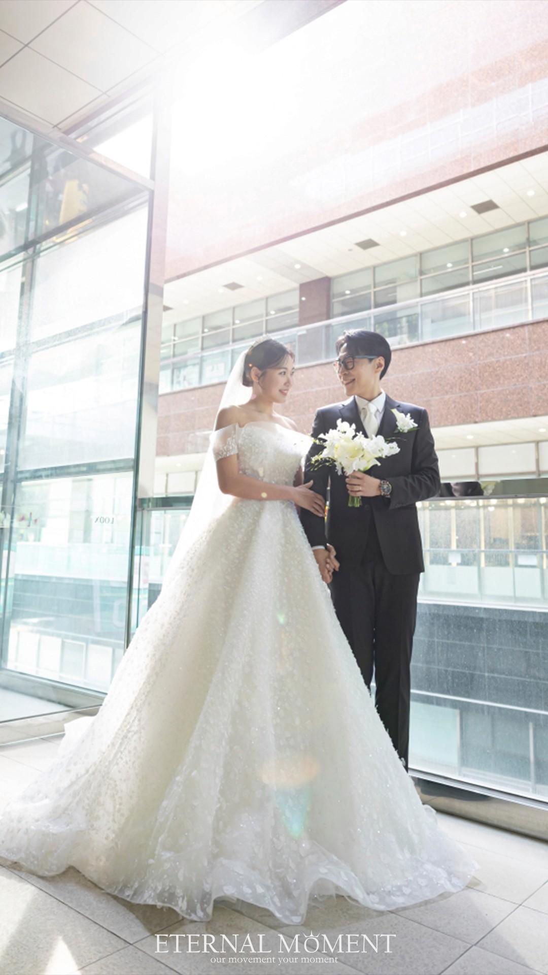 규수당은 대기 시간 동안 건물의 복도, 통창 공간, 계단, 야외 연결 통로 등을 활용한 스냅 촬영이 가능합니다. 이터널모먼트는 정해진 홀 내부뿐만 아니라 베뉴 곳곳의 구조를 미리 스케치하여, 마치 야외 스냅이나 화보 같은 감성 컷들을 추가로 남겨드립니다.