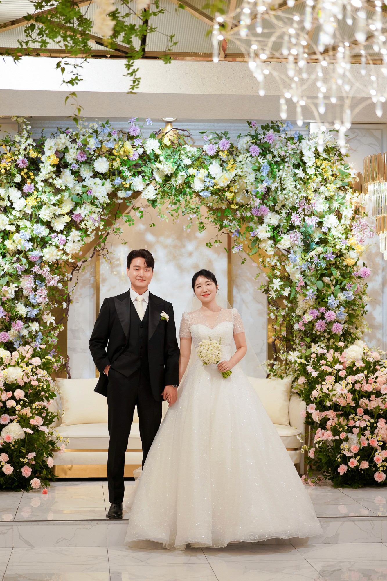 밝고 은은한 파스텔컬러의 메인 홀 톤을 유지하면서도, 이도스냅만의 감각을 더해 고급스럽고 클래식한 분위기를 연출합니다. 무대 집중도가 높은 조명 구성을 백분 활용하여 신랑 신부님께 시선이 고정되는 사진을 선사합니다.