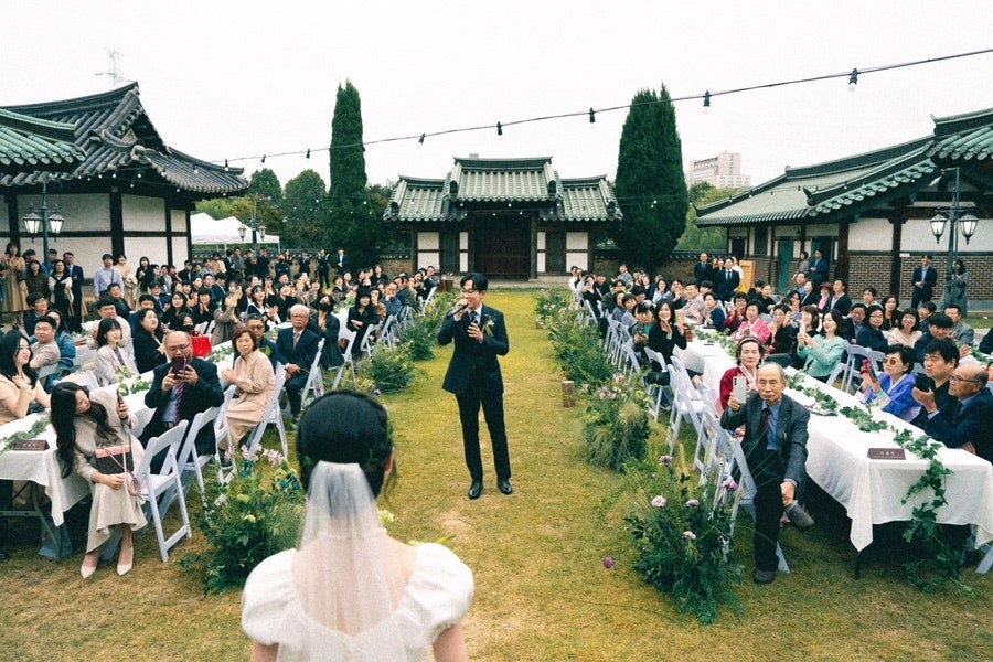 관리가 잘 된 한옥 마당은 그 자체로 훌륭한 무대가 됩니다. 전통적인 배경 위에서 펼쳐지는 현대적인 예식은 방문하는 하객들에게도 깊은 인상을 남깁니다.