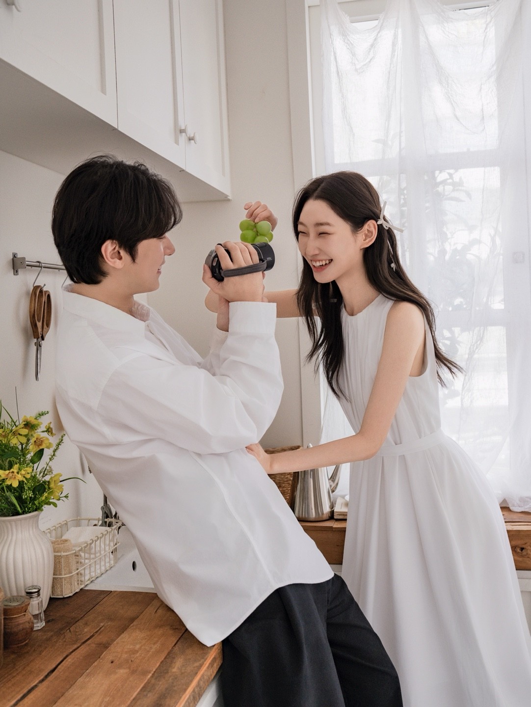 가장 깔끔한 배경에서 인물의 표정과 소품에만 집중하는 구도입니다. 클라이밍화 컷처럼 두 분만의 스토리를 녹여내기 가장 좋은 장소입니다.